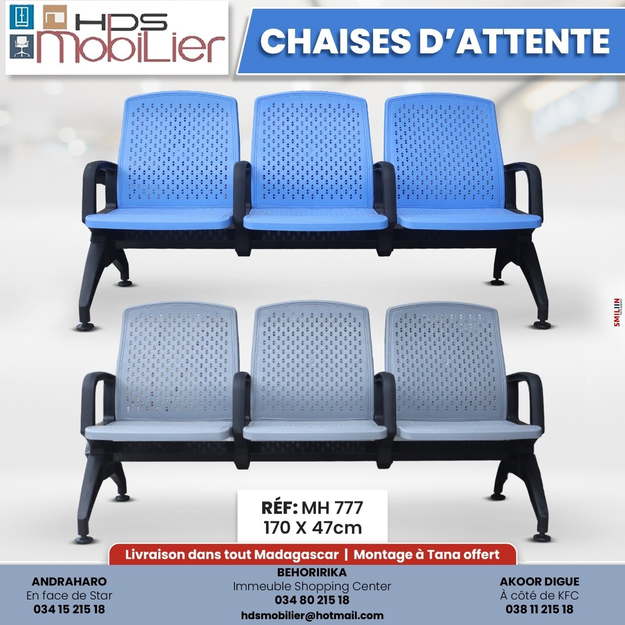 Découvrez nos chaises d’attente en plastique robuste, parfaites pour accueillir vos visiteurs avec confort et élégance. Idéales pour les espaces d’accueil, salles d’attente ou bureaux, ces sièges allient simplicité, praticité et durabilité. Faciles à nettoyer, à assembler et résistantes, elles offrent une solution pratique et esthétique pour votre mobilier professionnel.