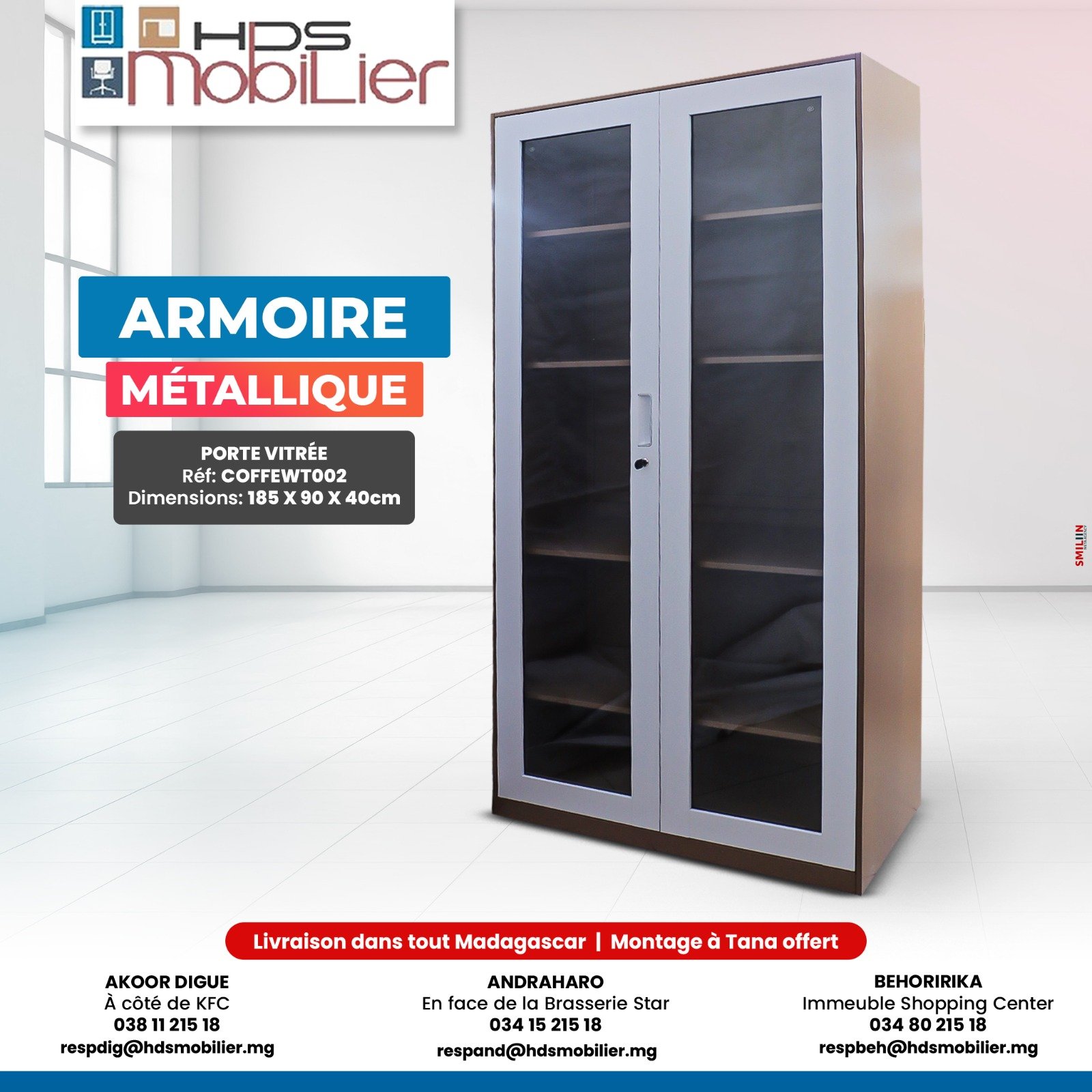 | Type | Armoire métallique à portes coulissantes et vitrées |