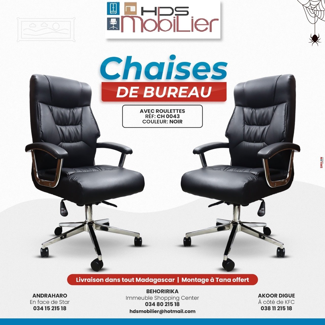 Voici une fiche technique en tableau pour les chaises de bureau présentées dans l’image :