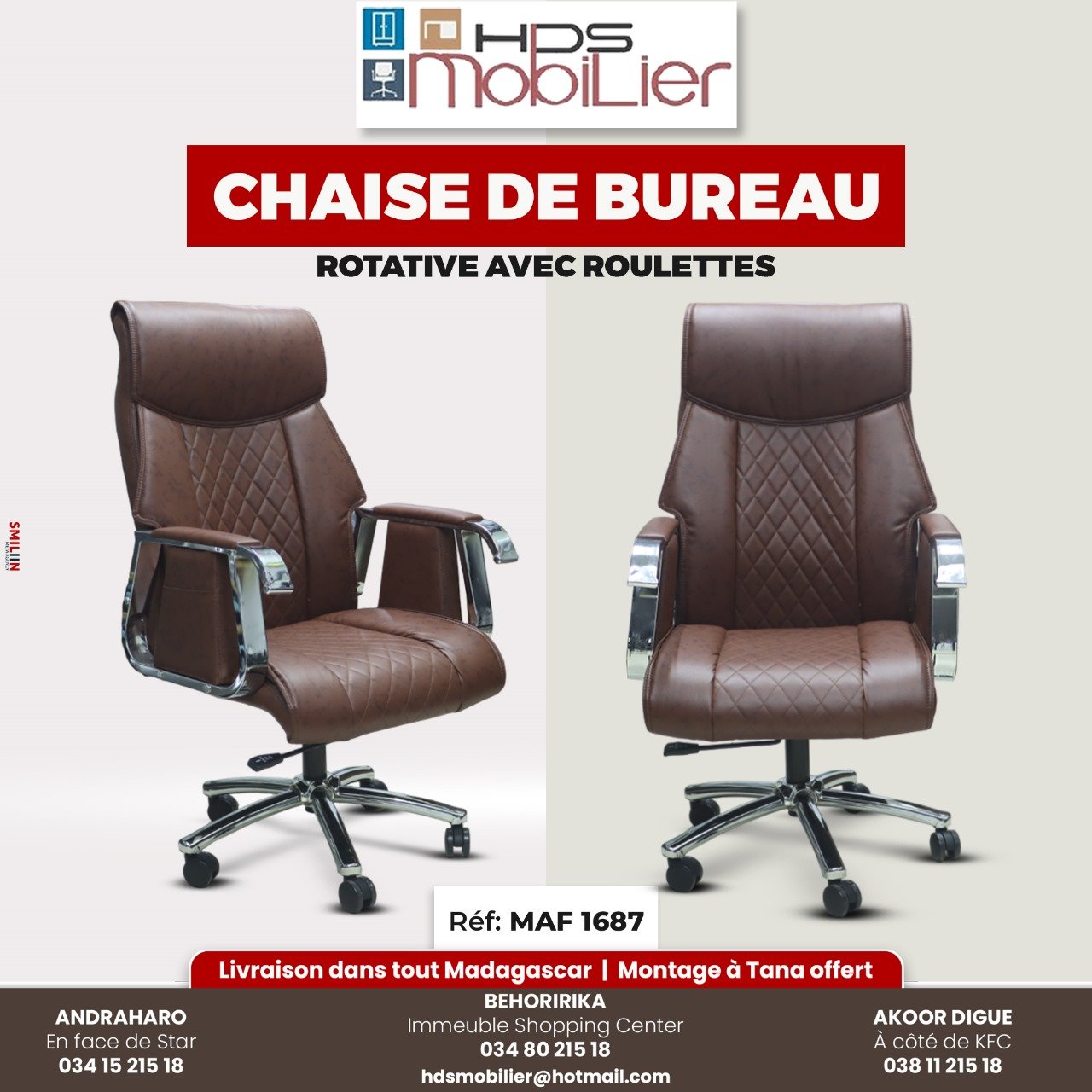 Apportez une touche d’élégance et de confort à votre espace de travail avec cette chaise de bureau rotative, dotée de roulettes pour une mobilité facile. Conçue avec un revêtement en cuir synthétique de haute qualité, elle offre un confort optimal grâce à son siège rembourré et son dossier ergonomique qui soutient parfaitement le dos. Sa structure en métal chromé assure robustesse et durabilité, tandis que le système de réglage en hauteur permet d’ajuster la position selon vos préférences. Son design moderne et sophistiqué en fait un choix idéal pour un bureau professionnel ou un espace de travail à domicile, alliant esthétique et fonctionnalité pour un confort quotidien.