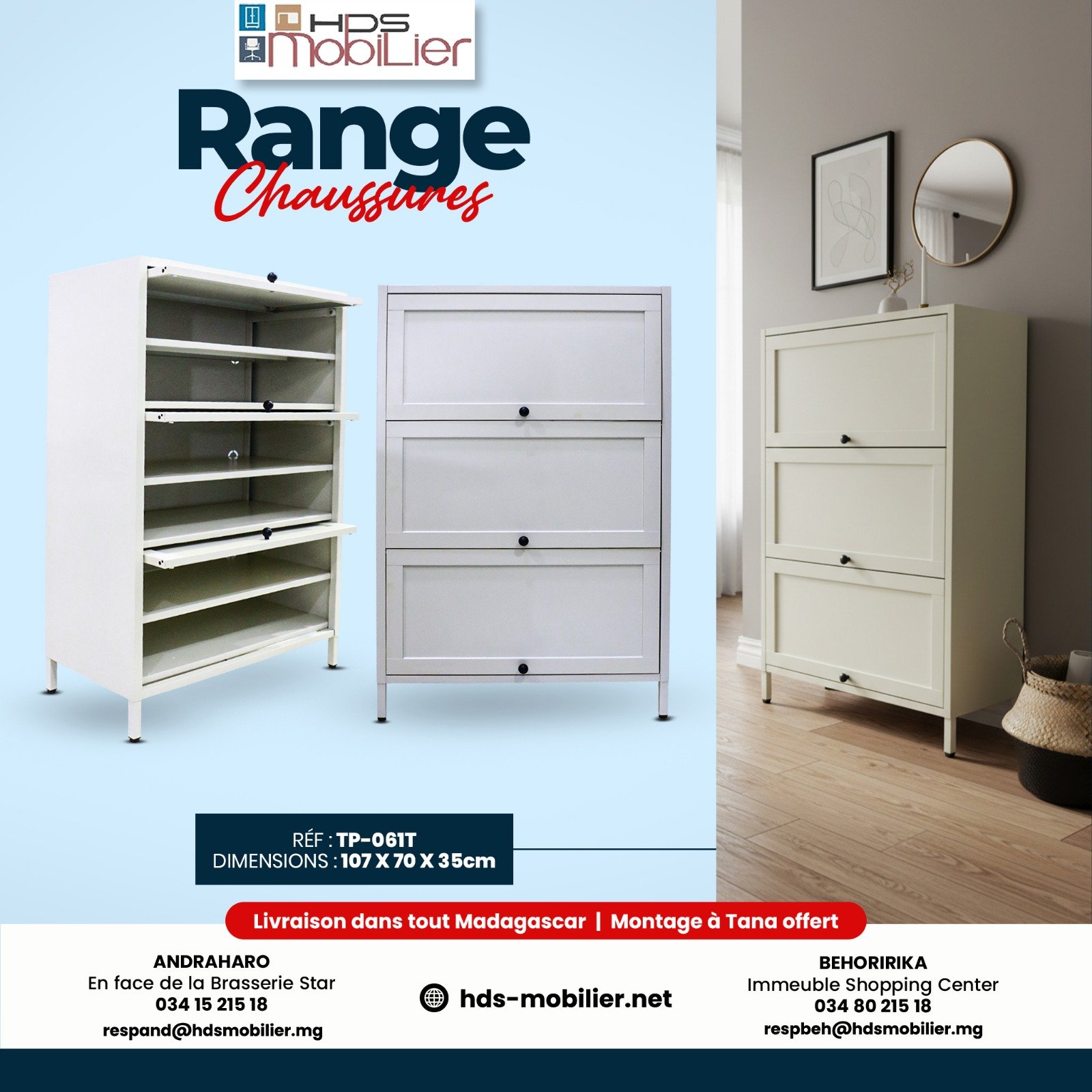 Le range-chaussures TP-061T est conçu pour ceux qui privilégient la simplicité et l’efficacité. Avec sa structure verticale et sa faible profondeur, il s’intègre parfaitement dans les couloirs étroits ou les entrées compactes. Son coloris blanc uniforme apporte une touche de fraîcheur et de propreté à votre intérieur. Équipé de trois grands compartiments à abattants, il permet d’organiser vos chaussures de manière invisible et ordonnée.