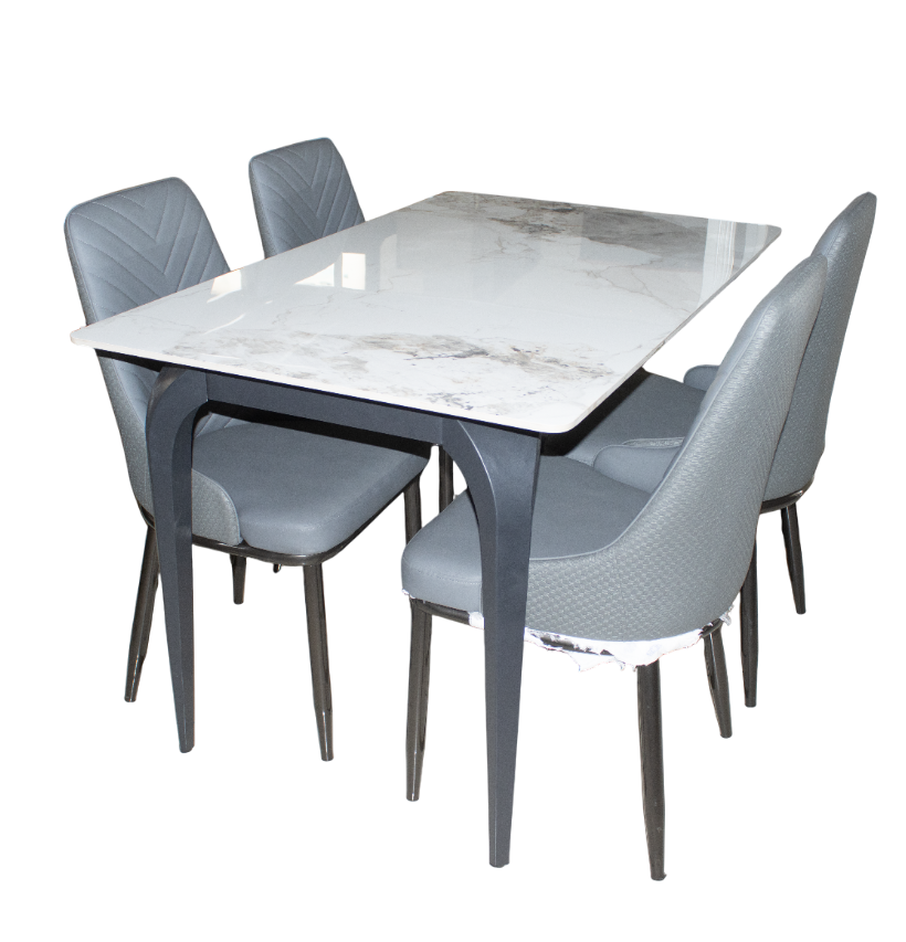 | Matériaux | Plateau imitation marbre / Pieds en métal / Chaises en similicuir |