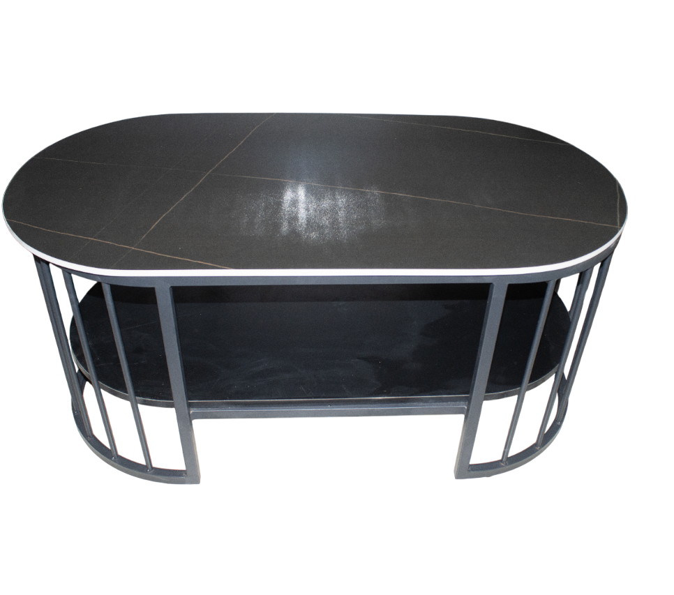 Alliez style et praticité avec la table basse. Son design ovale moderne, sa finition noire élégante et sa structure métallique robuste en font un choix idéal pour les salons contemporains, bureaux ou espaces d’accueil. Son double plateau offre un espace de rangement pratique pour garder vos objets à portée de main.
