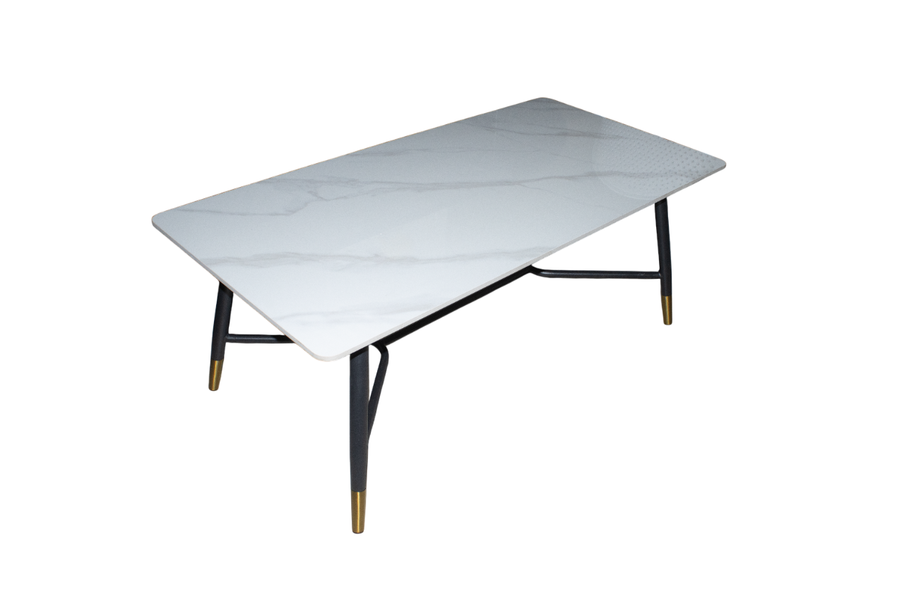 Alliez élégance et fonctionnalité avec la table basse T009. Son plateau rectangulaire effet marbre blanc apporte une touche moderne et raffinée à votre intérieur. La structure métallique noire avec embouts dorés assure stabilité et finition premium. Idéale pour les salons contemporains, les espaces lounge ou les bureaux au style épuré.