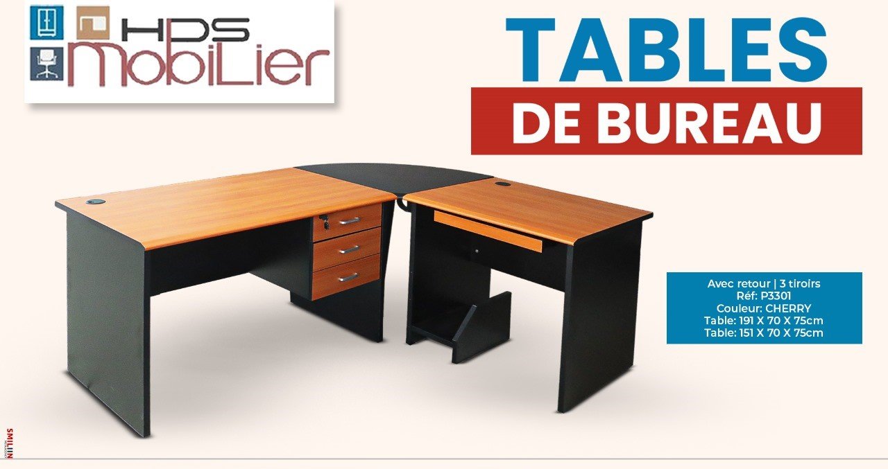 | Type | Table de bureau avec retour, 3 tiroirs |