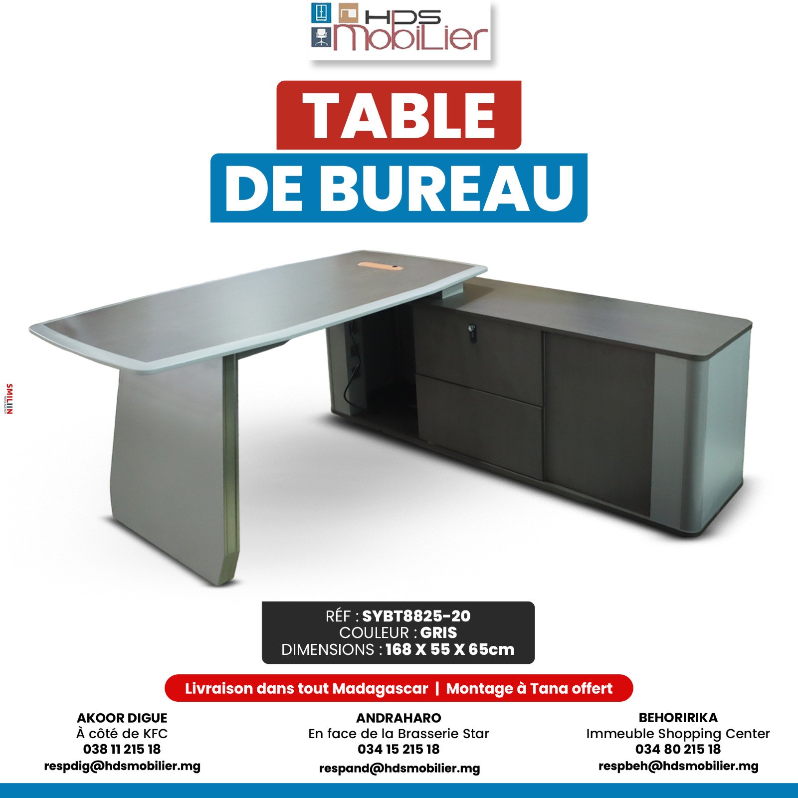Modèle moderne avec espace de travail pratique. Livraison dans toute Madagascar avec montage offert à Tana.