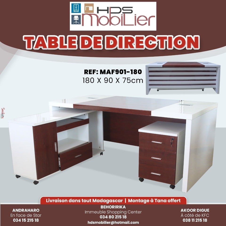 Ce bureau de 180 x 90 x 75 cm allie design moderne et fonctionnalité, idéal pour les bureaux professionnels ou à domicile. Avec ses rangements intégrés et sa finition de qualité, il offre un environnement de travail confortable et organisé. Livraison partout à Madagascar avec montage offert, pour une installation facile et rapide.